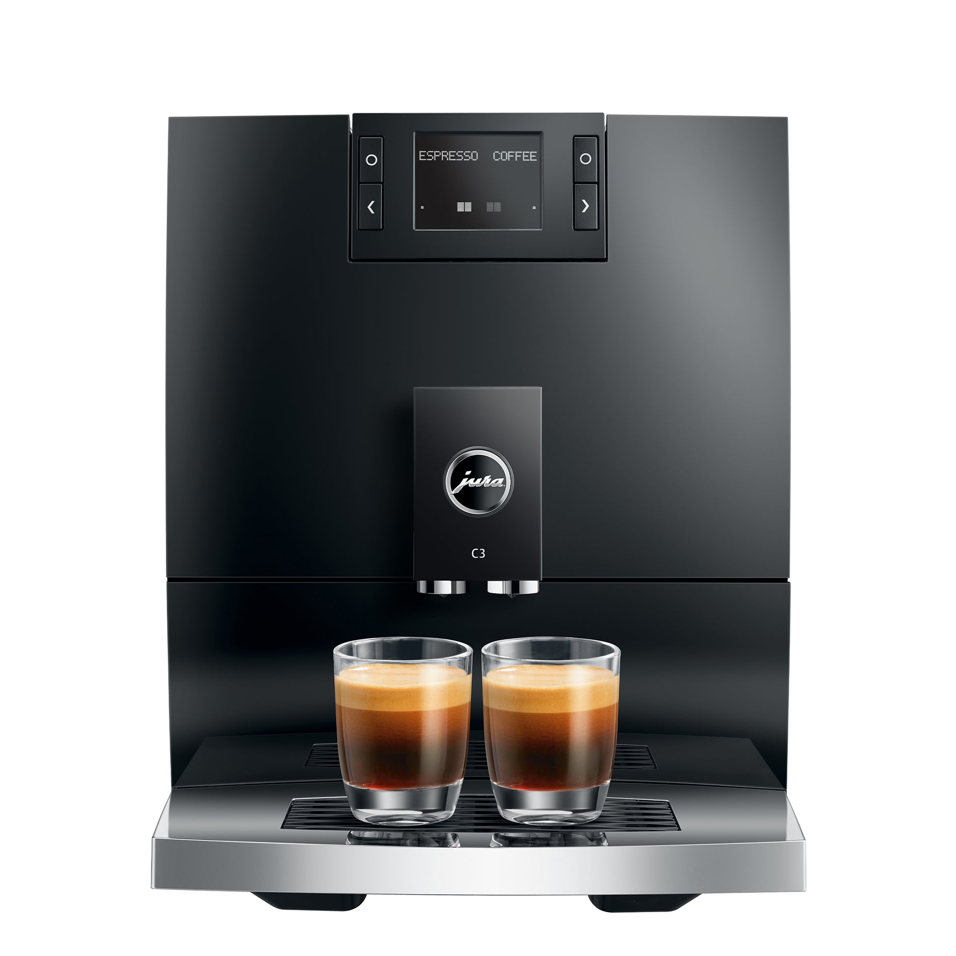 The JURA C3 is an elegant fully automatic espresso machine from JURA with premium design elements and compact dimensions at just over 10" wide. Featuring the same 5-16g brew group featured in JURA's full-sized machines, the C3 keeps things simple with just two drinks, espresso and coffee.