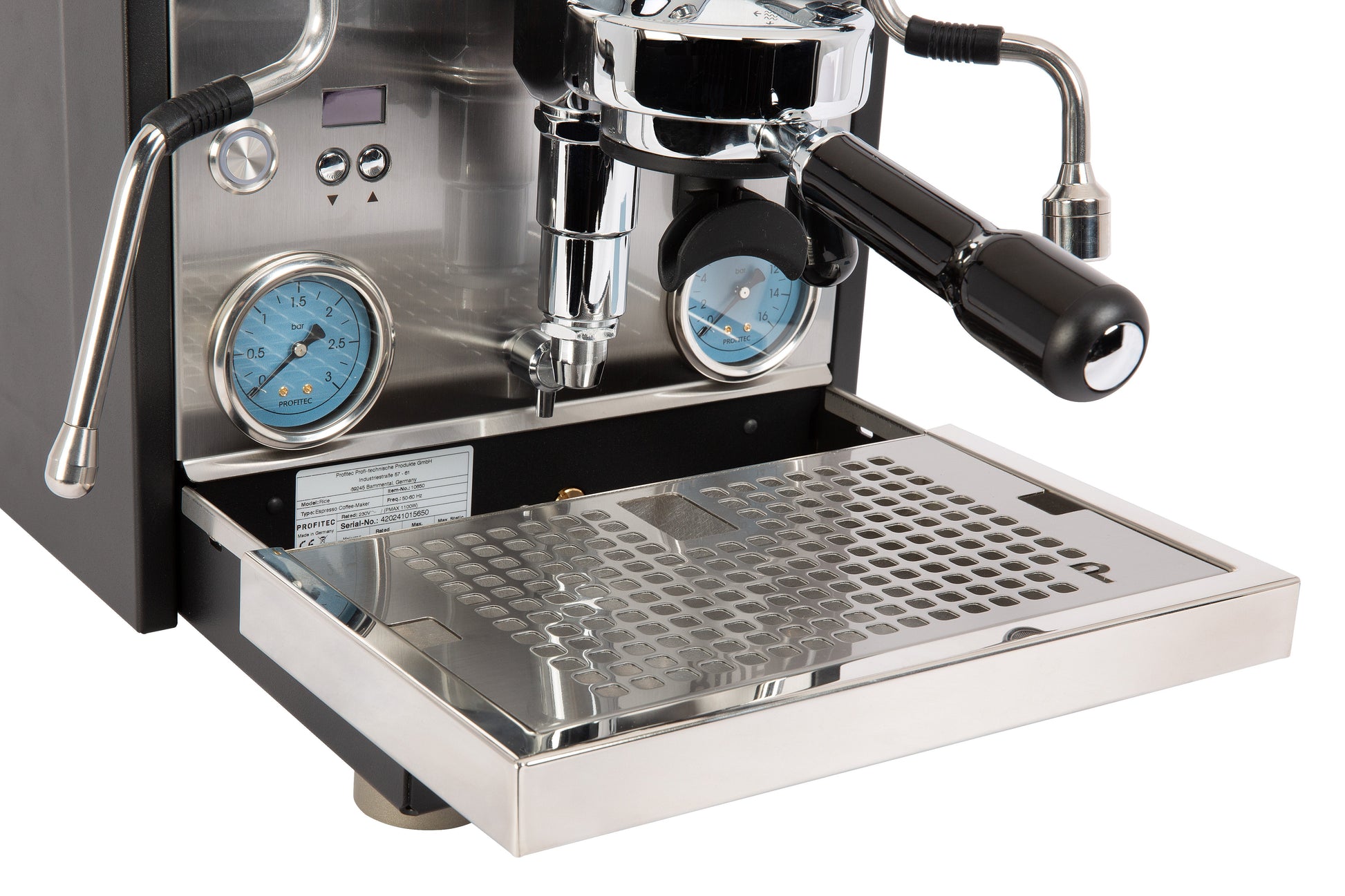 The marquee improvement from the Pro 600 to the RIDE is its ability to simultaneously heat the brew and steam boilers for a much faster heat-up time (8-10 minutes) and more consistent steam power overall. The RIDE also features Profitec’s new, OLED PID menu, which uses plain-text prompts and clear, helpful icons for a more intuitive navigation experience. This updated menu gives you full control over the RIDE’s functionality: set precise temperatures in both the brew and steam boilers, set daily wake-up and turn-off scheduling so the RIDE will be ready to brew when you need it, program the automatic pre-infusion to mitigate channeling, turn off the steam boiler entirely if you’re only brewing espresso, and a whole suite of other helpful features for keeping your machine brewing optimally.