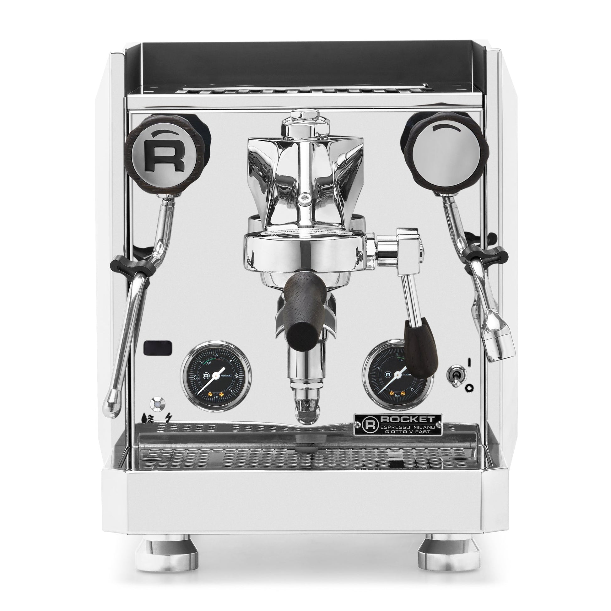 The Giotto FAST V is ideal for home baristas looking for a fast, style-oriented machine and regularly prepare specialty milk beverages. Rocket faithfuls will be delighted by the attention to detail and small branded easter eggs while home baristas in general will appreciate the updated brew-ready timeline thanks to the actively heated E61 group.