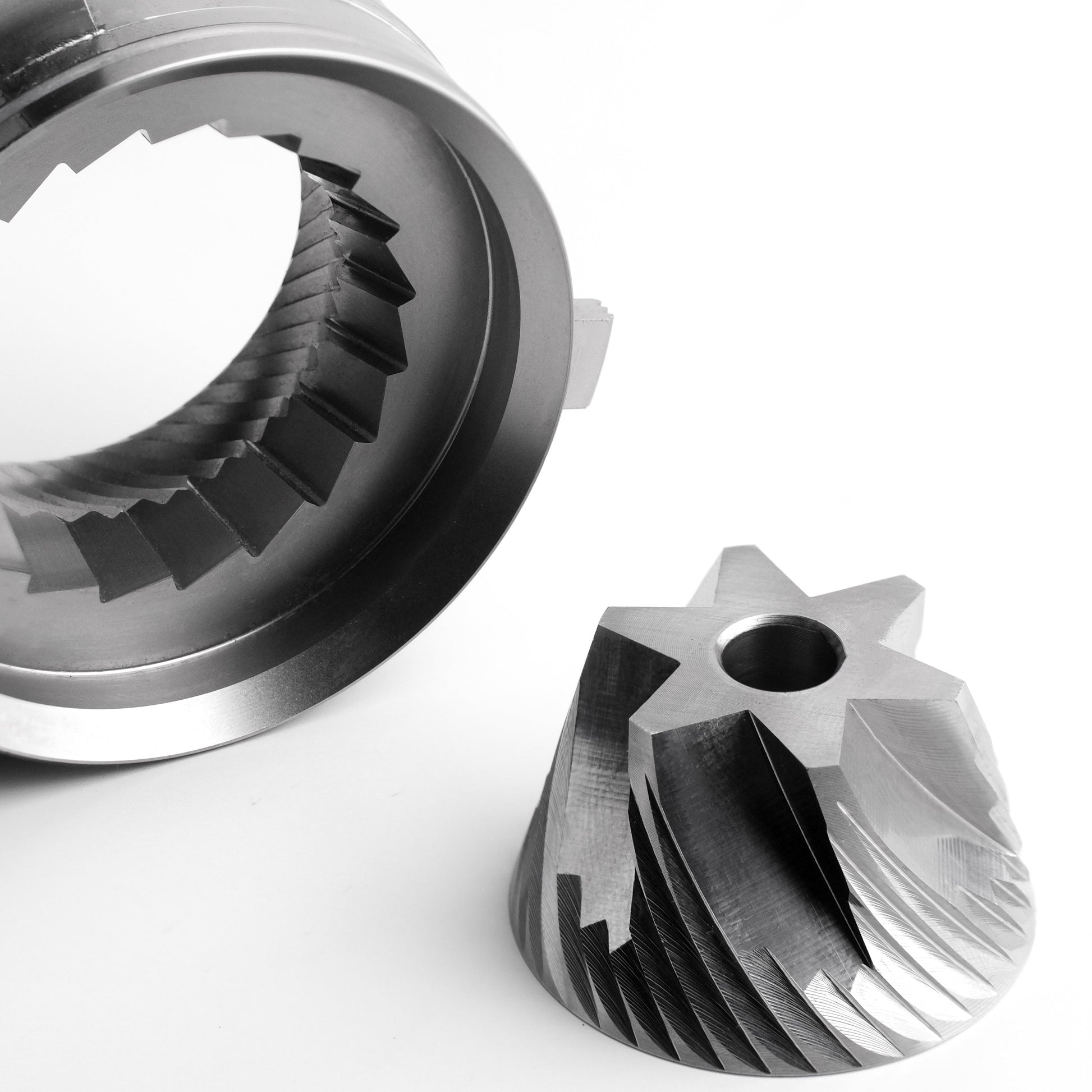 Similar to the VS3 and VS6, the VS4's top burr moves in order to adjust grind size. Burr movement is isolated within an adjustment collar, and the entire top burr assembly can be unlocked and disengaged from the grinder without losing your grind setting. This is incredibly useful for accessing the grinding chamber for cleaning and for removing and swapping the burrs to further customize grinding performance.
